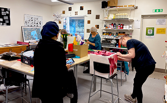 Utställningen ni ser idag är resultatet av 14 träffar där deltagarna utforskat allt från keramik och grafik till textil. Genom gemensamma workshops, konstnärsbesök och eget skapande har deltagarna tolkat temat "Där ljuset bryter fram" - var och en på sitt unika sätt.